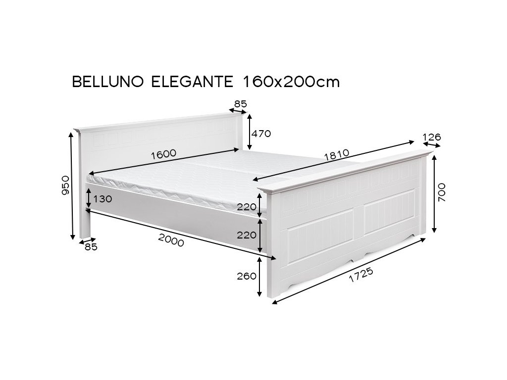 Postel Belluno Elegante 160 x 200 cm, borovice, bílá, masiv